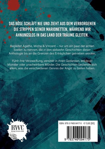 in ihrer Anthologie die verschiedendsten Aspekte der Angst. Mal stehen wir auf der Seite eines…mehrKurzgeschichten sind ein tolles Genre, in dem man in kürzester Zeit Spannung aufbauen, Zweifel und Hoffnung streuen und am Ende alles vernichten kann. In diesen siebzehn Geschichten hier findet sich von allem etwas. Die drei Autorinnen, die sich als Rising Writers Club zusammengetan haben, bedienen in ihrer Anthologie die verschiedendsten Aspekte der Angst. Mal stehen wir auf der Seite eines Mörders, mal auf der der Opfer. Mal müssen wir uns mit Monstern aus einer anderen Welt anlegen, mal die eigenen erkennen und bekämpfen.