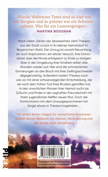 Nach vielen Jahren der Abwesenheit zieht Theresa aus der Stadt zurück in ihr kleines Heimatdorf. Der Umzug ist sowohl Neuanfang als auch Kapitulation, ein letzter Versuch, ihre Doktorarbeit über die Moore erfolgreich zu Ende zu bringen. Aber in der Umgebung ihrer Kindheit reißen alte Wunden wieder auf: Hier sind die schmerzlichen Erinnerungen an den Bruch mit ihrer Zwillingsschwester allgegenwärtig. Außerdem hadert Theresa nach wie vor mit einer schwerwiegenden Entscheidung, die sie nach dem frühen Tod ihres Bruders getroffen hat. In den unwirtlichen Mooren ihrer Heimat sucht sie Zuflucht und findet in der zaghaften Freundschaft mit ihrem jugendlichen Neffen neuen Mut. Doch die Konfrontation mit dem Unausgesprochenen hat längst etwas in Theresa losgetreten ...