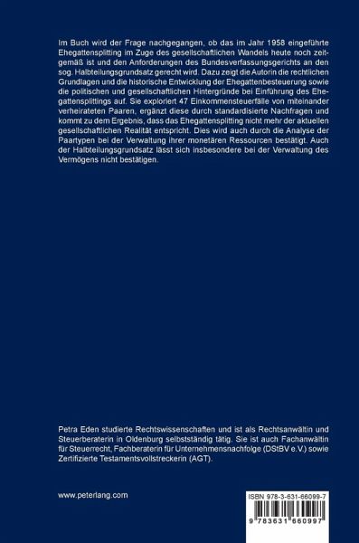 Im Buch wird der Frage nachgegangen, ob das im Jahr 1958 eingeführte Ehegattensplitting im Zuge des gesellschaftlichen Wandels heute noch zeitgemäß ist und den Anforderungen des Bundesverfassungsgerichts an den sog. Halbteilungsgrundsatz gerecht wird. Dazu zeigt die Autorin die rechtlichen Grundlagen und die historische Entwicklung der Ehegattenbesteuerung sowie die politischen und gesellschaftlichen Hintergründe bei Einführung des Ehegattensplittings auf. Sie exploriert 47 Einkommensteuerfälle von miteinander verheirateten Paaren, ergänzt diese durch standardisierte Nachfragen und kommt zu dem Ergebnis, dass das Ehegattensplitting nicht mehr der aktuellen gesellschaftlichen Realität entspricht. Dies wird auch durch die Analyse der Paartypen bei der Verwaltung ihrer monetären Ressourcen bestätigt. Auch der Halbteilungsgrundsatz lässt sich insbesondere bei der Verwaltung des Vermögens nicht bestätigen.