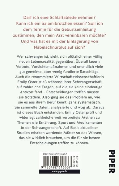 So ist dieses Buch entstanden: der erste große Schwangerschafts-Ratgeber aus der Feder einer Ökonomin. Emily Oster räumt auf mit zahlreichen weit verbreitete Mythen zu Ernährung während der Schwangerschaft, Alkohol und Bettruhe.
