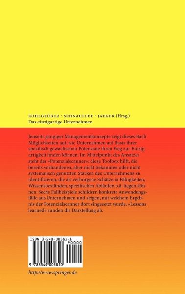 Jenseits gängiger Managementkonzepte zeigt dieses Buch Möglichkeiten auf, wie Unternehmen auf Basis ihrer spezifisch gewachsenen Potenziale ihren Weg zur Einzigartigkeit finden können. Im Mittelpunkt des Ansatzes steht der "Potenzialscanner": diese Toolbox hilft, die bereits vorhandenen, aber nicht bekannten oder nicht systematisch genutzten Stärken des Unternehmens zu identifizieren, die als verborgene Schätze in Fähigkeiten, Wissensbeständen, spezifischen Abläufen o.ä. liegen können. Sechs Fallbeispiele schildern konkrete Anwendungsfälle aus Unternehmen und zeigen, mit welchem Ergebnis der Potenzialscanner dort eingesetzt wurde. "Lessons learned" runden die Darstellung ab.