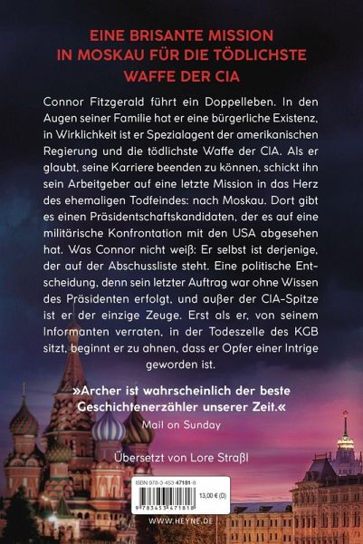 Connor Fitzgerald führt ein Doppelleben. In den Augen seiner Familie hat er eine bürgerliche Existenz, in Wirklichkeit ist er Spezialagent der amerikanischen Regierung und die tödlichste Waffe der CIA. Als er glaubt, seine Karriere beenden zu können, schickt ihn sein Arbeitgeber auf eine letzte Mission in das Herz des ehemaligen Todfeindes: nach Moskau. Dort gibt es einen Präsidentschaftskandidaten, der es auf eine militärische Konfrontation mit den USA abgesehen hat. Was Connor nicht weiß: Er selbst ist derjenige, der auf der Abschussliste steht. Eine politische Entscheidung, denn sein letzter Auftrag war ohne Wissen des Präsidenten erfolgt, und außer der CIA-Spitze ist er der einzige Zeuge. Erst als er, von seinem Informanten verraten, in der Todeszelle des KGB sitzt, beginnt er zu ahnen, dass er Opfer einer Intrige geworden ist.