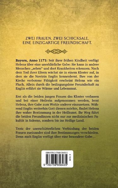 Zwei Frauen. Zwei Schicksale. Eine einzigartige Freundschaft. Bayern, Anno 1171: Seit ihrer frühen Kindheit verfügt Helena über eine unerklärliche Gabe: Sie kann in andere Menschen "sehen" und dort Krankheiten erkennen. Nach dem Tod ihrer Eltern wächst sie in einem Kloster auf, in dem sie die Novizin Englin kennenlernt. Ihre von der Kirche verbotene Fähigkeit erscheint Helena wie ein Fluch. Allein durch die bedingungslose Freundschaft zu Englin erfährt sie Wärme und Lebensmut. Erst als die beiden jungen Frauen das Kloster verlassen und bei einer Heilerin aufgenommen werden, lernt Helena, ihre Gabe zum Wohle anderer einzusetzen. Während Englin weiterhin Gott dienen möchte, findet Helena ihre wahre Bestimmung in der Heilkunst. Ihr Weg führt die beiden Freundinnen nicht nur zur medizinischen Fakultät in Salerno, sondern bis ins Heilige Land.Trotz der unerschütterlichen Verbindung der beiden Frauen zueinander sind ihre Bestimmungen verschieden. Denn auch Englin verfügt über eine besondere Gabe ...