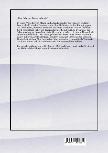 In einer Welt, die von Magie und alten Legenden durchzogen ist, führt Leona, die Erbin der Dämmerlande, ihre Gefährten in den Kampf gegen die Dunkelheit, die das Land einst bedrohte. Nachdem sie den Dunklen Lord besiegt hat, kehrt ein überraschender Feind zurück: Lysandra, die Schattenkönigin, deren Macht die Grenzen zwischen Licht und Dunkelheit zu verwischen droht. Auf ihrer gefährlichen Reise muss Leona nicht nur gegen äußere Mächte kämpfen, sondern sich auch ihrer eigenen inneren Dunkelheit stellen. Nur durch das Geheimnis des "Lumen-Seals" kann sie das Land retten - doch dafür muss sie den tiefsten Preis zahlen.Ein episches Abenteuer voller Magie, Mut und Opfer, in dem das Schicksal der Welt auf der Klinge eines Schwertes balanciert.