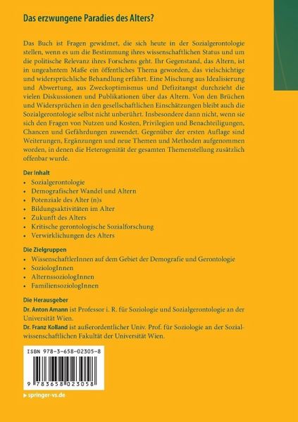 Das Buch ist Fragen gewidmet, die sich heute in der Sozialgerontologie stellen, wenn es um die Bestimmung ihres wissenschaftlichen Status und um die politische Relevanz ihres Forschens geht. Ihr Gegenstand, das Altern, ist in ungeahntem Maße ein öffentliches Thema geworden, das vielschichtige und widersprüchliche Behandlung erfährt. Eine Mischung aus Idealisierung und Abwertung, aus Zweckoptimismus und Defizitangst durchzieht die vielen Diskussionen und Publikationen über das Altern. Von den Brüchen und Widersprüchen in den gesellschaftlichen Einschätzungen bleibt auch die Sozialgerontologie selbst nicht unberührt. Insbesondere dann nicht, wenn sie sich den Fragen von Nutzen und Kosten, Privilegien und Benachteiligungen, Chancen und Gefährdungen zuwendet. Gegenüber der ersten Auflage sind Weiterungen, Ergänzungen und neue Themen und Methoden aufgenommen worden, in denen die Heterogenität der gesamten Themenstellung zusätzlich offenbar wurde.