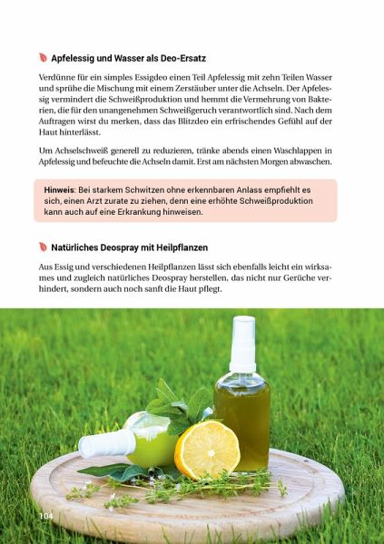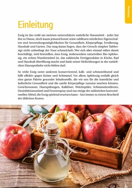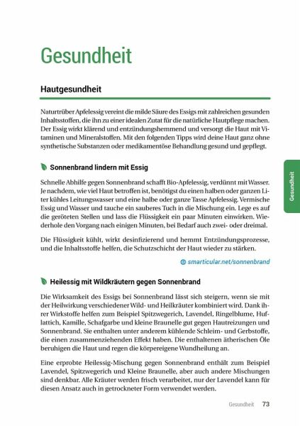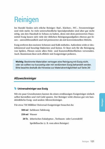 Essig ist das wohl am meisten unterschätzte natürliche Hausmittel - er macht zahlreiche Fertigprodukte in Küche, Bad und Haushalt überflüssig und darf dank seiner Heilwirkungen in der natürlichen Hausapotheke nicht fehlen. Die besten und nützlichsten Anwendungen für das universelle "Wundermittel" Essig haben wir in diesem Buch zusammengefasst.