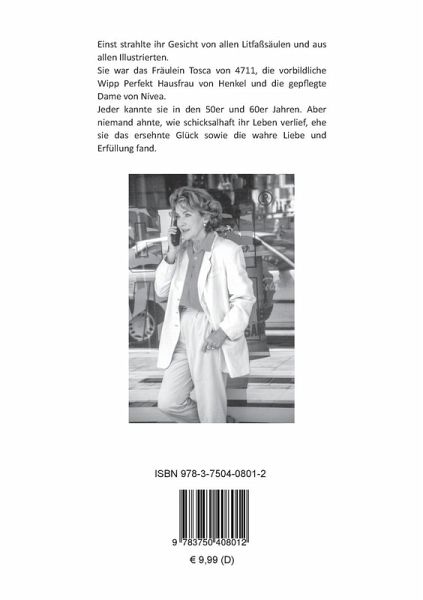 Das Fräulein Tosca Erinnerungen eines FotomodellsEinst strahlte ihr Gesicht von allen Litfaßsäulen und aus allen Illustrierten. Sie war das Fräulein Tosca von 4711, die vorbildliche Wipp Perfekt Hausfrau von Henkel und die gepflegte Dame von Nivea. Jeder kannte sie in den 50er und 60er Jahren. Aber niemand ahnte, wie schicksalhaft ihr Leben verlief, ehe sie das ersehnte Glück sowie die wahre Liebe und Erfüllung fand.