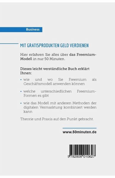 In nur 50 Minuten das Freemium-Modell verstehen Mit der Ausbreitung des Internets entwickelten sich auch neue Vertriebswege und Geschäftsmodelle für die neuen digitalen Produkte und Dienstleistungen. So entstand in den 1980er Jahren das Freemium-Modell. Es kombiniert zwei Preisstrategien, indem von einem Produkt zwei Versionen angeboten werden: Die eine ist gratis (free), die andere ist kostenpflichtig (premium), bietet aber verbesserte und/oder umfassendere Leistungen. Ziel ist, so viele Kunden wie möglich zu gewinnen und schließlich vom Kauf zu überzeugen. Für die erfolgreiche Anwendung sollten einige Schritte befolgt werden, um so Risiken zu umgehen. Anhand praktischer Beispiele aus der digitalen Welt wird diese Theorie leicht verständlich veranschaulicht. So erhalten Sie einen interessanten und praxisorientierten Überblick über das Wesentliche. Nach 50 Minuten können Sie: ¿ Freemium als Geschäftsmodell anwenden ¿ Risiken erkennen, die das Modell birgt ¿ das Modell mit anderen Methoden der digitalen Vermarktung kombinieren Der Einstieg in ein neues Kapitel Ihrer Unternehmensgeschichte! Über 50MINUTEN.DE BUSINESS ¿ MANAGEMENT UND MARKETING Was bewegt die Wirtschaftswelt? Mit der Serie Business ¿ Management und Marketing der Reihe 50Minuten verstehen Sie schnell die wichtigsten Modelle und Konzepte. Unsere Titel versorgen Sie mit der notwendigen Theorie, prägnanten Definitionen der Schlüsselwörter und interessanten Fallstudien in einem einfachen und leicht verständlichen Format. Sie sind der ideale Ausgangspunkt für Leserinnen und Leser, die ihre Fähigkeiten und Kenntnisse erweitern möchten.