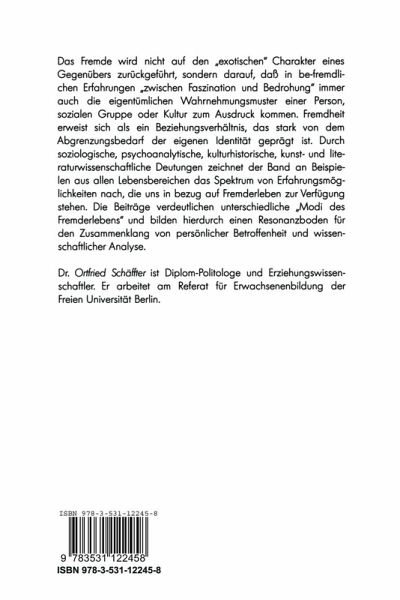 "Sage mir, was Dir fremdartig erscheint, und ich sage Dir, wer Du bist!" Seit einiger Zeit wird das Verhältnis zwischen "Innen" und "Außen" prekär und uns dabei auf lustvolle wie auf schmerzliche Weise bewußt. Vielfältige Grenzflächen zum Fremden haben sich emotional aufgeladen und erweisen sich als ambivalent: ihre Erfahrungsmöglichkeiten bewegen sich zwischen Faszination und Bedrohung. Mit der zunehmenden Durchlässigkeit der politischen und sozialen Grenzen und einer sich steigernden globalen Mobilität werden auch die Möglichkeiten zur Auseinandersetzung mit dem "konkreten Fremden", d.h. mit seiner ernüchtern den Alltäglichkeit vielfältiger. Wenn lange Zeit die Vorstellung vorherrschen konnte, daß "die Fremde" vorwiegend räumlich außerhalb des eigenen Lebens horizonts anzusiedeln sei, so gerät sie uns heute bereits auf vielfältige und oft sonderbare Weise "unter die Haut". Es geht daher nicht mehr allein um die Klärung dessen, worin die Fremdar tigkeit des Anderen im einzelnen besteht oder wie sie sich in vertrauten Begriffen beschreiben und erklären ließe. In der spannungsreichen Beziehung zwischen ei nem eigentümlichen "Innen" und einem fremdartigen" Außen" werden wir viel mehr damit konfrontiert, daß es zunächst um die eigenen Wahrnehmungsweisen und Erfahrungsmöglichkeiten geht, durch die Teile der Außenwelt (aber auch un bekannte Innenwelten) uns zu be-fremden vermögen.