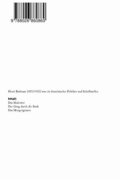 Henri Barbusse (1873/1935) war ein französischer Politiker und Schriftsteller. Inhalt: . Das Säulentor . Der Gang durch die Stadt . Das Morgengrauen