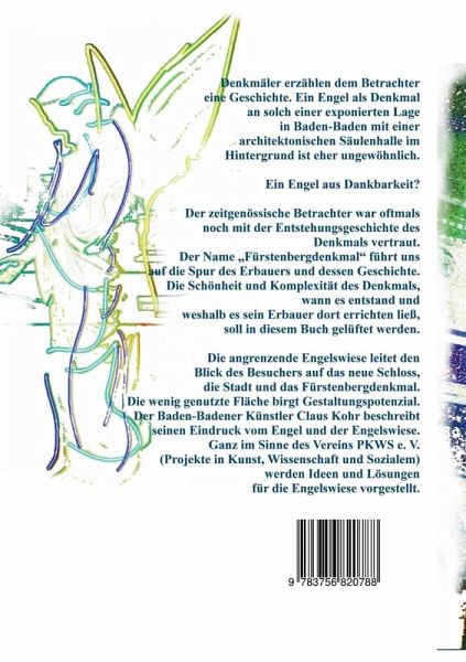 Denkmäler erzählen dem Betrachter eine Geschichte. Ein Engel als Denkmal an solch einer exponierten Lage in Baden-Baden mit einer architektonischen Säulenhalle im Hintergrund ist eher ungewöhnlich. Ein Engel aus Dankbarkeit? Der zeitgenössische Betrachter war oftmals noch mit der Entstehungsgeschichte des Denkmals vertraut. Der Name Fürstenbergdenkmal führt uns auf die Spur des Erbauers und dessen Geschichte. Die Schönheit und Komplexität des Denkmals, wann es entstand und weshalb es sein Erbauer dort errichten ließ, soll in diesem Buch gelüftet werden. Die angrenzende Engelswiese leitet den Blick des Besuchers auf das neue Schloss, die Stadt und das Fürstenbergdenkmal.Die wenig genutzte Fläche birgt Gestaltungspotenzial. Der Baden-Badener Künstler Claus Kohr beschreibt seinen Eindruck vom Engel und der Engelswiese.Ganz im Sinne des Vereins PKWS e.V. (Projekte in Kunst, Wissenschaft und Sozialem) werden Ideen und Lösungen für die Engelswiese vorgestellt.