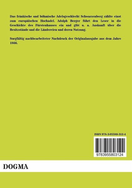 Das fränkische und böhmische Adelsgeschlecht Schwarzenberg zählte einst zum europäischen Hochadel. Adolph Berger führt den Leser in die Geschichte des Fürstenhauses ein und gibt u. a. Auskunft über die Besitzstände und die Ländereien und deren Nutzung.