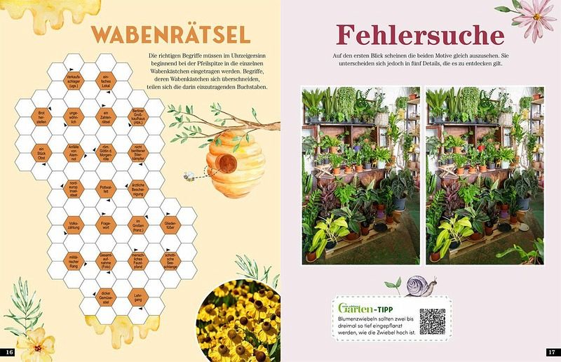 über 160 Seiten voller Rätsel rund um das Thema Gartenmit Fachwissen und kreativen Inspirationen für den eigenen Garten