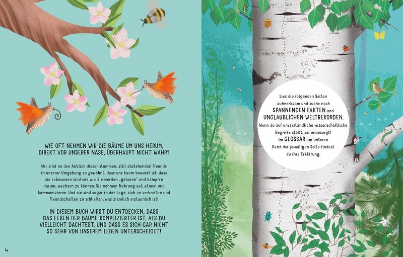 Wurzel, Stamm, Rinde, Blätter oder Nadeln: Wir sind so daran gewöhnt, von unseren stillen Freunden den Bäumen umgeben zu sein, dass wir vergessen, dass sie Lebewesen sind, genau wie wir. Dieses intelligent gestaltete Sachbilderbuch enthüllt in schematischen Bildern und Illustrationen die überraschendsten Fakten und Kids entdecken, dass das Leben der Bäume komplizierter ist, als sie dachten. Wie werden Bäume geboren? Wie verteidigen sie sich? Wie schaffen es einige zu wandern? Hier wird spannendes Wissen über die Funktionen von Bäumen und die Merkmale ihrer vielen Teile vermittelt. Kindern die Natur näher zu bringen war noch nie so wichtig wie heute.
