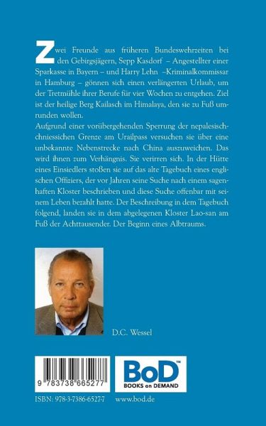 Zwei Freunde aus früheren Bundeswehrzeiten bei den Gebirgsjägern, Sepp Kasdorf - Angestellter einer Sparkasse in Bayern - und Harry Lehn -Kriminalkommissar in Hamburg - gönnen sich einen verlängerten Urlaub, um der Tretmühle ihrer Berufe für vier Wochen zu entgehen. Ziel ist der heilige Berg Kailasch im Himalaya, den sie zu Fuß umrunden wollen.Aufgrund einer vorübergehenden Sperrung der nepalesisch-chinesischen Grenze am Urailpass versuchen sie über eine unbekannte Nebenstrecke nach China auszuweichen. Das wird ihnen zum Verhängnis. Sie verirren sich. In der Hütte eines Einsiedlers stoßen sie auf das alte Tagebuch eines englischen Offiziers, der vor Jahren seine Suche nach einem sagenhaften Kloster beschrieben und diese Suche offenbar mit seinem Leben bezahlt hatte. Der Beschreibung in dem Tagebuchfolgend, landen sie in dem abgelegenen Kloster Lao-san am Fuß der Achttausender. Der Beginn eines Albtraums.