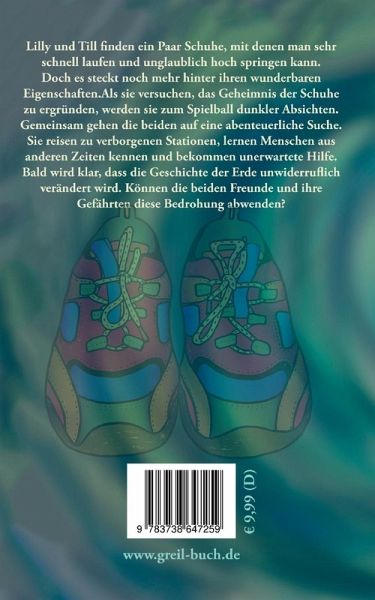 Lilly und Till finden ein Paar Schuhe, mit denen man sehr schnell laufen und unglaublich hoch springen kann. Doch es steckt noch mehr hinter ihren wunderbaren Eigenschaften. Als sie versuchen, das Geheimnis der Schuhe zu ergründen, werden sie zum Spielball dunkler Absichten. Gemeinsam gehen die beiden auf eine abenteuerliche Suche. Sie reisen zu verborgenen Stationen, lernen Menschen aus anderen Zeiten kennen und bekommen unerwartete Hilfe. Bald wird klar, dass die Geschichte der Erde unwiderruflich verändert wird. Können die beiden Freunde und ihre Gefährten diese Bedrohung abwenden und das Geheimnis der magischen Schuhe lösen?