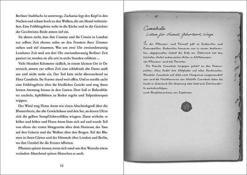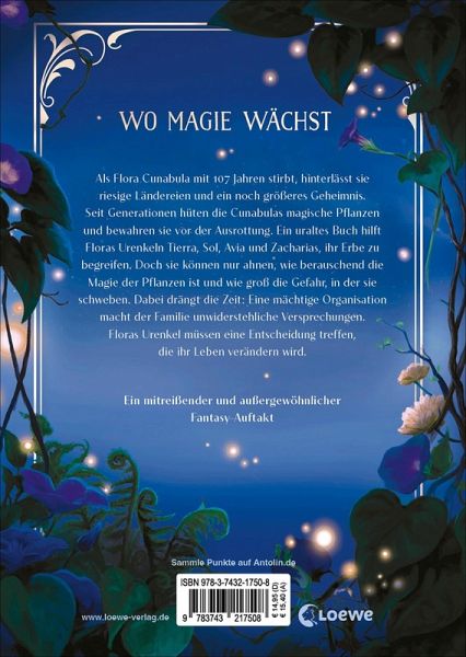 Als Flora Cunabula mit 107 Jahren stirbt, hinterlässt sie riesige Ländereien und ein noch größeres Geheimnis. Seit Generationen hüten die Cunabulas magische Pflanzen und bewahren sie vor der Ausrottung durch eine gnadenlose Organisation. Ein uraltes Buch hilft Floras Urenkeln Tierra, Sol, Avia und Zacharias, ihr Erbe zu begreifen. Doch sie können nur ahnen, wie berauschend die Magie der Pflanzen ist und wie groß die Gefahr, in der sie schweben. Die Zeit drängt: Eine mächtige Firma verspricht der Familie Unglaubliches. Floras Urenkel müssen eine Entscheidung treffen, die ihr Leben verändern wird.