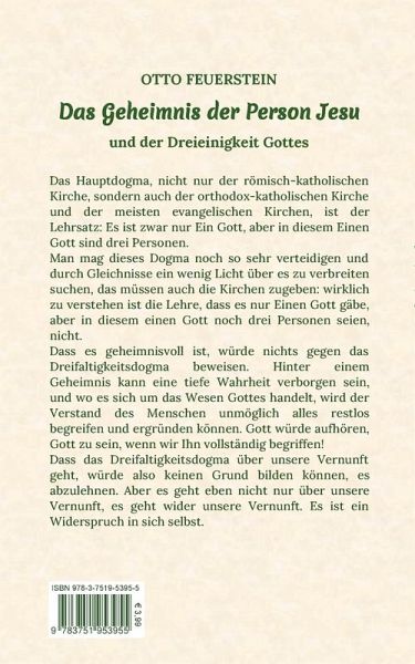 Das Hauptdogma, nicht nur der römisch-katholischen Kirche, sondern auch der orthodox-katholischen Kirche und der meisten evangelischen Kirchen, ist der Lehrsatz: Es ist zwar nur Ein Gott, aber in diesem Einen Gott sind drei Personen. Man mag dieses Dogma noch so sehr verteidigen und durch Gleichnisse ein wenig Licht über es zu verbreiten suchen, das müssen auch die Kirchen zugeben: wirklich zu verstehen ist die Lehre, dass es nur Einen Gott gäbe, aber in diesem einen Gott noch drei Personen seien, nicht. Dass es geheimnisvoll ist, würde nichts gegen das Dreifaltigkeitsdogma beweisen. Hinter einem Geheimnis kann eine tiefe Wahrheit verborgen sein, und wo es sich um das Wesen Gottes handelt, wird der Verstand des Menschen unmöglich alles restlos begreifen und ergründen können. Gott würde aufhören, Gott zu sein, wenn wir Ihn vollständig begriffen! Dass das Dreifaltigkeitsdogma über unsere Vernunft geht, würde also keinen Grund bilden können, es abzulehnen. Aber es geht eben nicht nur über unsere Vernunft, es geht wider unsere Vernunft. Es ist ein Widerspruch in sich selbst.
