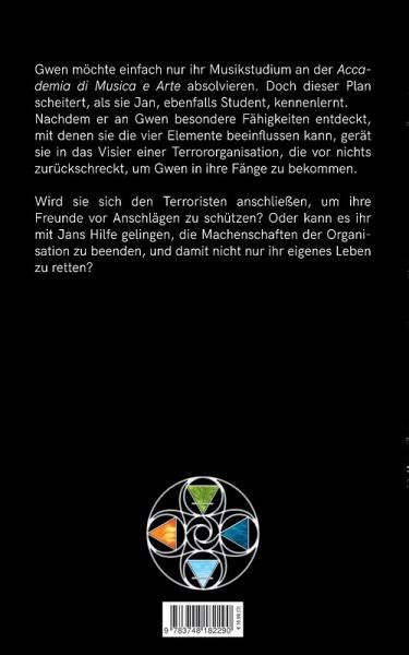 Gwen möchte einfach nur ihr Musikstudium an der Accademia di Musica e Arte absolvieren. Doch dieser Plan scheitert, als sie Jan, ebenfalls Student, kennenlernt.Nachdem er an Gwen besondere Fähigkeiten entdeckt, mit denen sie die vier Elemente beeinflussen kann, gerät sie in das Visier einer Terrororganisation, die vor nichts zurückschreckt, um Gwen in ihre Fänge zu bekommen.Wird sie sich den Terroristen anschließen, um ihre Freunde vor Anschlägen zu schützen? Oder kann es ihr mit Jans Hilfe gelingen, die Machenschaften der Organisation zu beenden, und damit nicht nur ihr eigenes Leben zu retten?