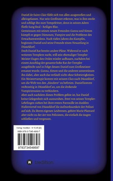 Daniel de Saint-Clair hat es nicht leicht. In der Schule wird er gemobbt, zu Hause ärgert ihn sein großer Bruder Alessio. Daniels Situation ändert sich schlagartig, als sein Großvater ihm ein Geheimnis anvertraut: In seinen Adern fließt heiliges Blut! Die Familie de Saint-Clair stammt von der Heiligen Familie ab und ist darum zu Besonderem auserkoren. Kurz vor seinem Tod ernennt Daniels Großvater den Enkel zu seinem Nachfolger. Er schlägt Daniel zum Tempelritter und stattet ihn mit einem geheimnisvollen Schwert aus. Mit seinen neuen Freunden Ganna und Simon erprobt er seine Fähigkeiten. Sie bekämpfen Dämonen und Vampire - und werden dabei erwachsen. Nach aufregenden Jahren planen sie einen Neubeginn in Düsseldorf. Doch innerhalb des Templerordens rumort es gewaltig: Bei einem Anschlag waren alle hohen Räte ermordet und Daniel zum Großmeister ernannt worden. Während er nach weiteren Templern sucht, beschließt sein ehemaliger Templermeister Eugen, den Orden wieder aufzubauen. Daniel kann sich auf die Hilfe seiner alten Freunde verlassen. Gemeinsam verhindern sie gerade noch rechtzeitig eine drohende Vampirbelagerung in Düsseldorf. Entschlossen kämpfen sie gegen die Bedrohung an und schaffen es, die Situation zu klären. Doch Daniels Leben geht aufregend weiter. In den dunklen Ecken von Düsseldorfs Hafenviertel erregen die zwei Templerlehrlinge Lucille und Arielle das Interesse der Polizei. Hauptkommissarin Marie Plantard lässt die bizarre und blutige Szene, in die sie während ihrer Streife hineingeraten war, nicht mehr los: Offensichtlich töteten die beiden jungen Mädchen Hunde, die sie attackiert hatten. Dann folgt ein Angriff von Vögeln auf Spaziergänger am Rhein. Marie Plantard verbeißt sich in die Ermittlungen und entdeckt nach und nach außergewöhnliche Vorgänge - die auch sie selbst und ihre Herkunft betreffen.