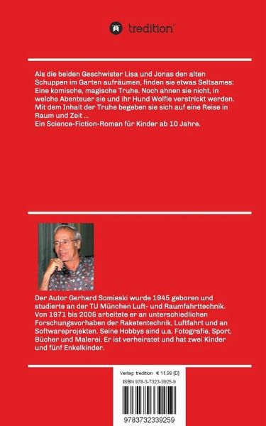 Als die beiden Geschwister Lisa und Jonas den alten Schuppen im Garten aufräumen, finden sie etwas Seltsames: Eine komische, magische Truhe. Noch ahnen sie nicht, in welche Abenteuer sie und ihr Hund Wolfie verstrickt werden. Mit dem Inhalt der Truhe begeben sie sich auf eine Reise in Raum und Zeit ... Ein Science-Fiction-Roman für Kinder ab 10 Jahre.