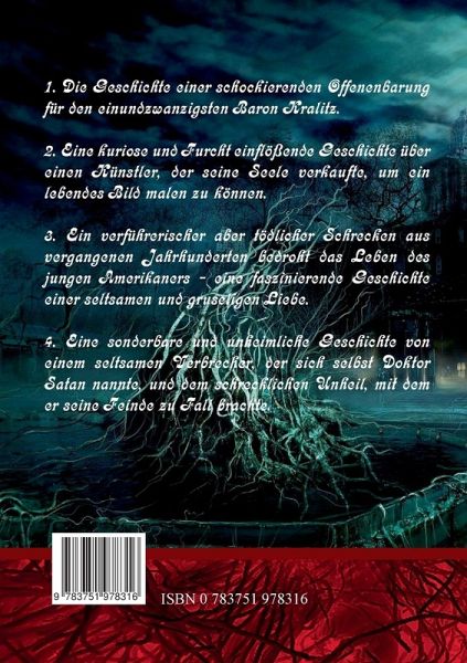Schundroman? Trivialliteratur?In den 1930er bis 1950er Jahren erfreuten sich die sogenannten Pulp-Magazine, auch kurz 'Pulp' genannt, großer Beliebtheit. Durchgehende Handlung und Spannung, ohne besonderen literarischen und intellektuellen Anspruch - einfach nur unterhaltend.Eines der bekanntesten und populärsten Pulp-Magazine wurde unter dem Namen 'Weird Tales' herausgegeben. Hier erschienen regelmäßig Horror-Kurzgeschichten, einzeln oder auch mehrere zusammen.Die in diesem Buch enthalten vier Geschichten:1936 - DAS GEHEIMNIS DERER VON KRALITZ von Henry Kuttner - die Geschichte einer schockierenden Offenbarung für den einundzwanzigsten Baron Kralitz.1937 - DIE GOLGOTA TÄNZER von Manly Wade Wellman - eine kuriose und Furcht einflößende Geschichte über einen Künstler, der seine Seele verkaufte, um ein lebendes Bild malen zu können.1936 - DIE VERLORENE TÜR von Dorothy Quick - ein verführerischer aber tödlicher Schrecken aus vergangenen Jahrhunderten bedroht das Leben des jungen Amerikaners - eine faszinierende Geschichte einer seltsamen und gruseligen Liebe.1936 - MASKE DES TODES von Paul Ernst - Eine sonderbare und unheimliche Geschichte von einem seltsamen Verbrecher, der sich selbst Doktor Satan nannte, und dem schrecklichen Unheil, mit dem er seine Feinde zu Fall brachte.