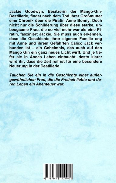Jackie Goodwyn, Besitzerin der Mango-Gin-Destillerie, findet nach dem Tod ihrer Großmutter eine Chronik über die Piratin Anne Bonny. Doch nicht nur die Schilderung über diese starke, unbeugsame Frau, die so viel mehr war als eine Piratin, fasziniert Jackie. Sie muss auch erkennen, dass die Geschichte ihrer eigenen Familie eng mit Anne und ihrem Gefährten Calico Jack verbunden ist - ein Geheimnis, das auch auf den Mango Gin ein ganz neues Licht wirft. Und je tiefer sie in Annes Leben eintaucht, desto klarer wird ihr, dass die Zeit reif ist für eine besondere Neuerung in der Destillerie. - Tauchen Sie ein in die Geschichte einer außergewöhnlichen Frau, die die Freiheit liebte und deren Leben ein Abenteuer war.