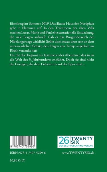 Eisenberg im Sommer 2019. Das älteste Haus der Nordpfalz geht in Flammen auf. In den Trümmern der alten Villa machen Lucas, Marie und Paul eine sensationelle Entdeckung, die viele Fragen aufwirft. Gab es das Burgunderreich der Nibelungensage wirklich? Sollte doch etwas dran sein an dem unermesslichen Schatz, den Hagen von Tronje angeblich im Rhein versenkt hat? Für die drei beginnt ein faszinierendes Abenteuer, das sie in die Welt des 5. Jahrhunderts entführt. Doch sie sind nicht die Einzigen, die dem Geheimnis auf der Spur sind ...