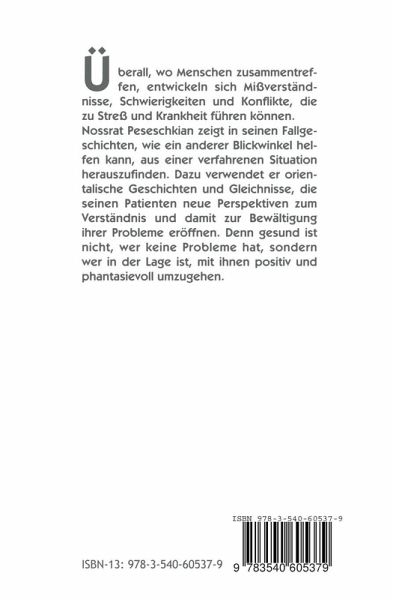 Überall, wo Menschen zusammentreffen, entwickeln sich Mißverständnisse, Schwierigkeiten und Konflikte, die zu Streß und Krankheit führen können. Der Autor zeigt in seinen Fallgeschichten, wie ein anderer Blickwinkel helfen kann, aus einer verfahrenen Situation herauszufinden. Dazu verwendet er orientalische Geschichten und Gleichnisse, die seinen Patienten neue Perspektiven zum Verständnis und damit zur Bewältigung ihrer Probleme eröffnen. Denn gesund ist nicht, wer keine Probleme hat, sondern wer in der Lage ist, mit ihnen positiv und phantasievoll umzugehen.