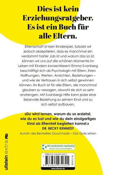 Die meisten Menschen gehen mit genauen Vorstellungen davon, wie das Leben mit Kind sein wird, in die Elternschaft. Wenn diese Erwartungen dann nicht erfüllt werden, fühlt es sich schnell an, als würde man das mit der Erziehung einfach nicht richtig hinbekommen, egal wie sehr man sich auch bemüht. Die Psychologin Dr. Emma Svanberg stellt viele ehrliche Fragen und zeigt, wie sich Elternschaft im echten Leben anfühlt und aussieht - einem Leben, das nicht perfekt ist und in dem Väter und Mütter oft unter Druck stehen. Schlechte Tage sind unvermeidlich und bedeuten nicht, dass man eine schlechte Mutter oder ein schlechter Vater ist! Eine Lektüre, bei der wir lernen, wie wir unsere Kinder gut begleiten können, ohne sie zu verbiegen, und mehr Vertrauen in uns selbst entwickeln.