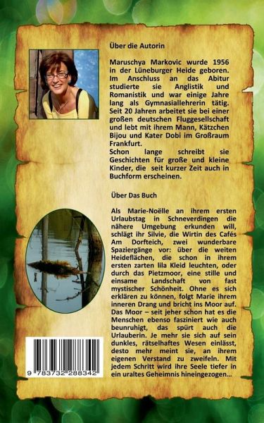 Als Marie-Noëlle an ihrem ersten Urlaubstag in Schneverdingen die nähere Umgebung erkunden will, schlägt ihr Silvie, die Wirtin des Cafés Am Dorfteich, zwei wunderbare Spaziergänge vor: die weiten Heideflächen, die schon in ihrem ersten zarten lila Kleid leuchten, oder das Pietzmoor, eine stille und einsame Landschaft von fast mystischer Schönheit. Ohne es sich erklären zu können folgt Marie ihrem inneren Drang und bricht ins Moor auf. Das Moor - seit jeher schon hat es die Menschen ebenso fasziniert wie auch beunruhigt, das spürt auch die Urlauberin. Je mehr sie sich auf sein dunkles, rätselhaftes Wesen einlässt, desto mehr meint sie, an ihrem eigenen Verstand zu zweifeln...