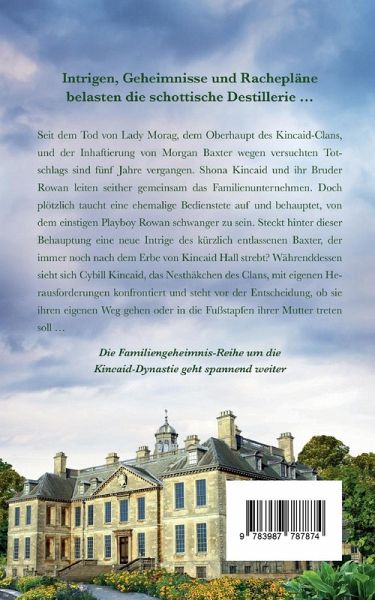 Intrigen, Geheimnisse und Rachepläne belasten die schottische Destillerie … Die Familiengeheimnis-Reihe um die Kincaid-Dynastie geht spannend weiter Seit dem Tod von Lady Morag, dem Oberhaupt des Kincaid-Clans, und der Inhaftierung von Morgan Baxter wegen versuchten Totschlags sind fünf Jahre vergangen. Shona Kincaid und ihr Bruder Rowan leiten seither gemeinsam das Familienunternehmen. Doch plötzlich taucht eine ehemalige Bedienstete auf und behauptet, von dem einstigen Playboy Rowan schwanger zu sein. Steckt hinter dieser Behauptung eine neue Intrige des kürzlich entlassenen Baxter, der immer noch nach dem Erbe von Kincaid Hall strebt? Währenddessen sieht sich Cybill Kincaid, das Nesthäkchen des Clans, mit eigenen Herausforderungen konfrontiert und steht vor der Entscheidung, ob sie ihren eigenen Weg gehen oder in die Fußstapfen ihrer Mutter treten soll … Dies ist eine überarbeitete Neuausgabe des bereits erschienenen Titels Das Geheimnis von Kincaid Hall. Weitere Titel dieser Reihe Das Erbe von Kincaid Hall (ISBN: 9783987786501) Erste Leser:innenstimmen „Endlich gibt es mehr von der Kincaid-Familie und ihrer Distillerie … großartig!" „Kurzweilig erzählt, durchweg spannend und nur weiterzuempfehlen." „Fans von Familiengeheimnissen, Schottland und/oder Whiskey sollten den Roman unbedingt lesen!" „Emotional, turbulent und mit fesselnden Wendungen gespickt."