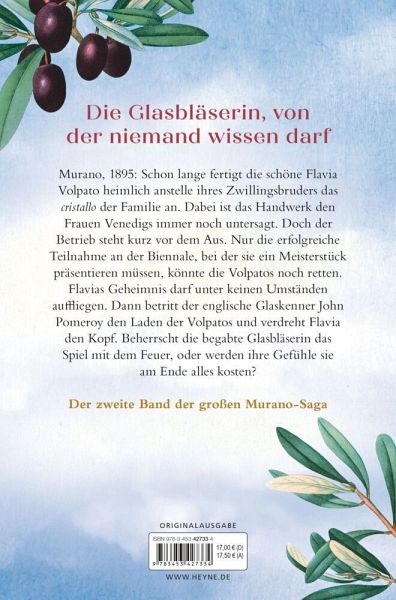 Murano, 1895: Schon lange fertigt die schöne Flavia Volpato heimlich an Stelle ihres eher untalentierten Zwillingsbruders das cristallo der Familie an, auch wenn den Frauen Venedigs das Handwerk immer noch untersagt ist. Trotzdem muss sie machtlos mitansehen, wie der Vater schließlich mit dem Erzrivalen Dal Corso fusioniert. Obendrein bekommt sie einen Glaskenner, den adligen John Pomeroy, auf den Hals gehetzt, der im Auftrag von Sibilla Veridiani ihrem gut gehüteten Geheimnis auf der Spur ist. Sollte er die Wahrheit herausfinden, wäre ihre Teilnahme an der Biennale in Gefahr und damit das Schicksal ihrer ganzen Familie besiegelt. Doch Flavia und John kommen sich immer näher. Beherrscht die begabte Glasbläserin das Spiel mit dem Feuer, oder werden ihre Gefühle sie am Ende alles kosten?