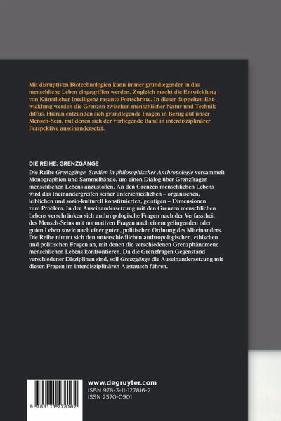 Mit disruptiven Biotechnologien kann immer grundlegender in das menschliche Leben eingegriffen werden. Dem stehen die rasanten Fortschritte in der Entwicklung von Künstlicher Intelligenz gegenüber. In dieser doppelten Entwicklung werden die Grenzen zwischen menschlicher Natur und Technik diffus. Hieran entzünden sich grundlegende Fragen in Bezug auf unser Mensch-Sein: Werden Menschen unter therapeutischen Eingriffen mit disruptiven Biotechnologien - wie etwa Tiefer Hirnstimulation - zu Cyborgs? Lässt sich das Mensch-Sein mit disruptiven Biotechnologien optimieren: mit Hilfe von Eingriffen in das menschliche Erbgut, von Gesundheits-Apps, Psychopharmaka, Neurofeedbacks, Implantaten? Lassen sich Anwendungen von Biotechnologien zu Zwecken der Therapie und des Enhancements überhaupt klar unterscheiden? Stehen wir bereits am Anfang einer Ersetzung des Menschen durch die Technik, wie in trans- und posthumanistischen Utopien suggeriert wird? Der vorliegende Band setzt sich mit diesenund ähnlichen Fragen in interdisziplinärer Perspektive auseinander und regt damit zur Diskussion über neue Formen menschlichen Lebens mit disruptiven Biotechnologien an.