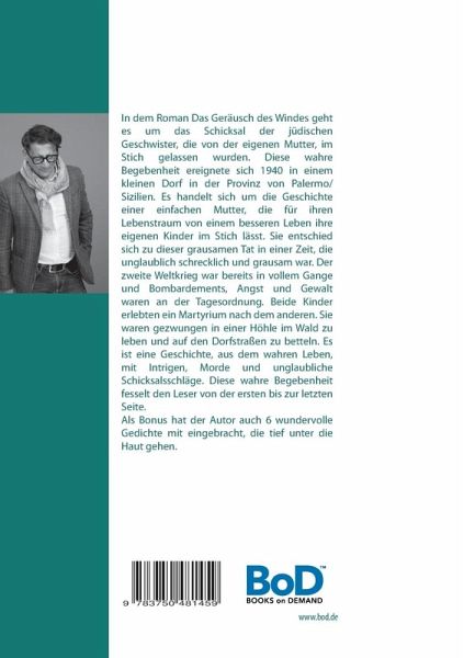 In dem Roman Das Geräusch des Windes geht es um das Schicksal der jüdischen Geschwister, die von der eigenen Mutter, im Stich gelassen wurden. Diese wahre Begebenheit ereignete sich 1940 in einem kleinen Dorf in der Provinz von Palermo/Sizilien. Es handelt sich um die Geschichte einer einfachen Mutter, die für ihren Lebenstraum von einem besseren Leben ihre eigenen Kinder im Stich lässt. Sie entschied sich zu dieser grausamen Tat in einer Zeit, die unglaublich schrecklich und grausam war. Der zweite Weltkrieg war bereits in vollem Gange und Bombardements, Angst und Gewalt waren an der Tagesordnung. Beide Kinder erlebten ein Martyrium nach dem anderen. Sie waren gezwungen in einer Höhle im Wald zu leben und auf den Dorfstraßen zu betteln. Es ist eine Geschichte, aus dem wahren Leben, mit Intrigen, Morde und unglaubliche Schicksalsschläge. Diese wahre Begebenheit fesselt den Leser von der ersten bis zur letzten Seite. Als Bonus hat der Autor auch 6 wundervolle Gedichte mit eingebracht, die tief unter die Haut gehen.