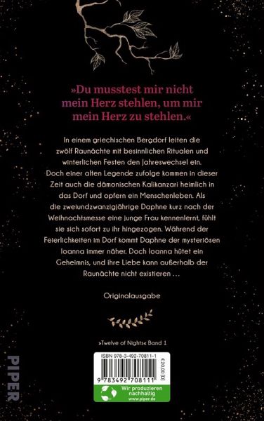 Raunächte leiten in Dodekada, einem abgelegenen griechischen Bergdorf, den Jahreswechsel ein. Doch einer…mehrDer Klappentext von „Twelve of Nights“ hatte mich magisch angezogen. Ein griechisches Bergdorf, eine uralte Sage und eine Liebe, die nur zwölf Nächte im Jahr existiert. Das klingt nach spannenden Lesestunden. Obwohl das Buch ganz anders war als erwartet, wurde ich nicht enttäuscht.