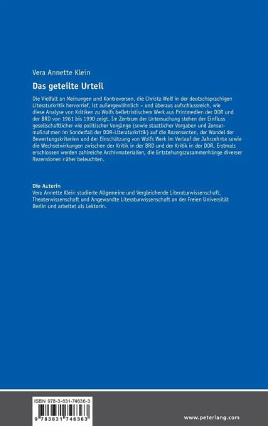 Die Vielfalt an Meinungen und Kontroversen, die Christa Wolf in der deutschsprachigen Literaturkritik hervorrief, ist außergewöhnlich - und überaus aufschlussreich, wie diese Analyse von Kritiken zu Wolfs belletristischem Werk aus Printmedien der DDR und der BRD von 1961 bis 1990 zeigt. Im Zentrum der Untersuchung stehen der Einfluss gesellschaftlicher wie politischer Vorgänge (sowie staatlicher Vorgaben und Zensurmaßnahmen im Sonderfall der DDR-Literaturkritik) auf die Rezensenten, der Wandel der Bewertungskriterien und der Einschätzung von Wolfs Werk im Verlauf der Jahrzehnte sowie die Wechselwirkungen zwischen der Kritik in der BRD und der Kritik in der DDR. Erstmals erschlossen werden zahlreiche Archivmaterialien, die Entstehungszusammenhänge diverser Rezensionen näher beleuchten.