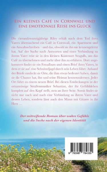 Ein kleines Café in Cornwall und eine emotionale Reise ins Glück Der mitreißende Roman über wahre Gefühle und die Suche nach der eigenen Identität Die vierundzwanzigjährige Riley erhält nach dem Tod ihres Vaters überraschend ein Café in Cornwall, ein Apartment und ein Anwaltsschreiben – und das, obwohl sie ihn nie kennengelernt hat. Auf der Suche nach Antworten und einer Verbindung zu ihrem Vater reist sie in den kleinen Küstenort Seagulls, um das Café zu übernehmen und mehr über ihn zu erfahren. Dort angekommen findet sie ein Fotoalbum und einen Brief ihres Vaters, in dem er sie auf eine Schnitzeljagd durch sein Leben führt: Anhand der Briefe entdeckt sie Orte, die ihm etwas bedeutet haben, damit sie die Chance hat, ihn und seine Heimat kennenzulernen. Jeder Ort führt zu einem neuen Brief. Bei diesen Entdeckungen ist der ortsansässige Straßenmusiker Sebastian, der ihr Gefühlsleben komplett auf den Kopf stellt, stets an ihrer Seite. Somit findet sie nicht nur nach und nach eine Verbindung zu ihrem Vater und dessen Leben, sondern lässt auch den Mann mit Gitarre in ihr Herz … Dies ist eine überarbeitete Neuauflage des bereits erschienen Titels Sieben Briefe nach Cornwall. Erste Leser:innenstimmen „Eine Feel Good Romance vor wunderschöner Cornwall-Kulisse." „Riley bei ihrer Spurensuche zu begleiten, hat mir viel Freude und beste Unterhaltung geboten." „romantisch, humorvoll und herzerwärmend" „Es geht um Heimat, Familie, Liebe und Musik – und alles gut verpackt in einer mitreißenden Geschichte."
