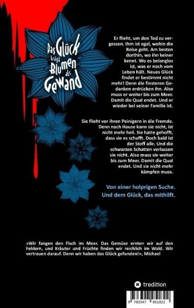 Die Geschichte einer holprigen Suche nach dem Glück. Eine, in der das Glück mithilft, ohne es zu wissen. Er flieht, um den Tod zu vergessen. Ihm ist egal, wohin die Reise geht. Am besten dorthin, wo ihn keiner kennt. Wo es belanglos ist, was er noch vom Leben hält. Neues Glück findet er bestimmt nicht mehr! Denn die finsteren Gedanken erdrücken ihn. Also muss er weiter bis zum Meer. Damit die Qual endet. Und er wieder bei seiner Familie ist.Sie flieht vor ihren Peinigern in die Fremde. Denn nach Hause kann sie nicht, ist nicht mehr heil. Sie hatte gehofft, dass sie es schafft. Doch bald ist der Stoff alle. Und die schwarzen Schatten verlassen sie nicht. Also muss sie weiter bis zum Meer. Damit die Qual endet. Und sie nicht mehr kämpfen muss.Was gibt es Besseres, als auf solch dunklen Wegen einen Gefährten zu haben? Niemand weiß, wo sein eigener Weg endet!