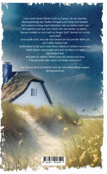 Lena meint ihren Ohren nicht zu trauen, als am zweiten Weihnachtstag das Telefon klingelt und Heiko sich meldet. Seit seinem Umzug nach München hat sie nichts mehr von ihm gehört und war sich sicher, ihn nie wieder zu sehen.Warum meldet er sich nach so langer Zeit? Kommt er zurück nach Kiel?Lena weiß nicht, was sie von diesem Anruf und der Bitte um ein Treffen halten soll.Außerdem ist da auch noch Mark. Mark ist Heikos Freund aus Kieler Zeiten und es gab eine Zeit als Mark an Lena interessiert war.Wie geht es weiter? Kann Lena sich erneut auf eine Freundschaft oder mehr mit Heiko einlassen?Bei diesem Buch handelt es sich um eine Neuauflage wegen Verlagswechsel!