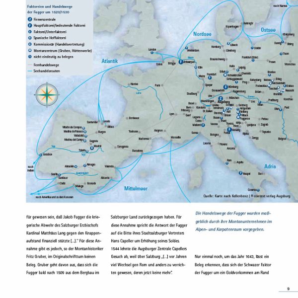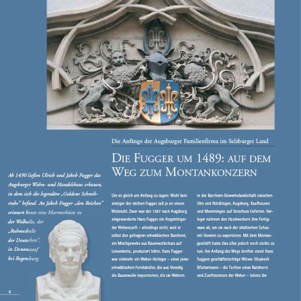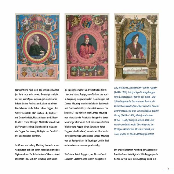 Keiner der reichen Augsburger Fugger saß je am Webstuhl. Beim steilen Aufstieg Jakob Fuggers "des Reichen" und seines Familienunternehmens spielte der Handel mit Tuchen und Gewürzen nur noch eine untergeordnete Rolle. Weit wichtiger waren die Finanzgeschäfte mit Päpsten, Kaisern und Königen, Kirchenfürsten und dem Hochadel. Über Darlehen für kleine Gewerken und große Kredite für Landesherren erwarben die Fugger zunächst Rechte an der Ausbeute von Erzgruben. Doch bald besaß die Augsburger Gesellschaft eigene Bergwerke und Verhüttungsbetriebe: Die Fugger errichteten einen europaweit führenden Montankonzern. Die Augsburger Firma profitierte vom "Bergsegen" in Tirol und Kärnten, Thüringen und Sachsen, Böhmen und Schlesien, Oberungarn und Spanien. Mit Kupfer, Silber, Gold, Blei und Quecksilber, mit Metallgewinnung und -verarbeitung in ihren Schmelzhütten sowie durch Handel mit den Metallen erwarben die Fugger ein legendäres Vermögen.
