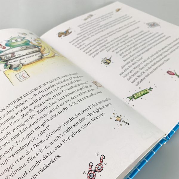 Mit viel Charme und Humor wird die fesselnde und turbulente Geschichte erzählt. Phantasievolle Wortschöpfungen und auf die Unterwasserwelt umgemünzte Begriffe wie "auf die Wellenminute pünktlich" oder "vierblättriges Seeblatt" bringen auch große Leser:innen zum Schmunzeln.