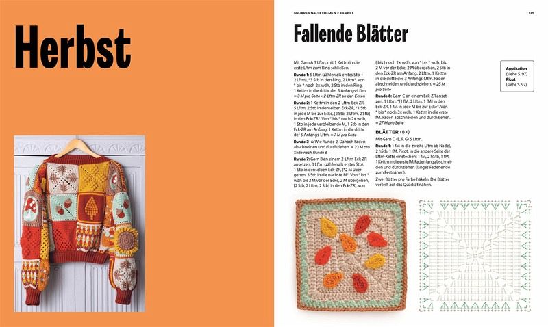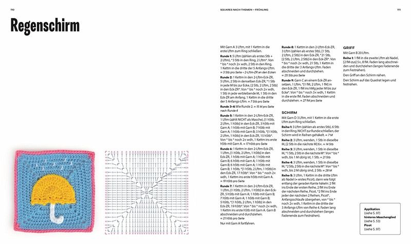 - Schritt-für-Schritt-Anleitungen und Häkelschriften zu jedem Quadrat