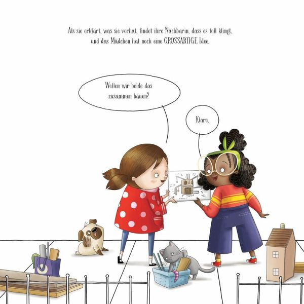 Das Mädchen und ihr Hund wollen etwas bauen. Sie packen ihre Sachen zusammen und machen sich auf den Weg zu ihrem Lieblingsarbeitsplatz - doch ihre Nachbarin mit ihrer Katze war zuerst da! Hmm, vielleicht könnten sie ja etwas gemeinsam machen? Eine großartige Idee! Also beginnt das Mädchen zu schneiden, zu hämmern und zu kleben, während die Nachbarin u¿berlegt, misst und rechnet. Die Nachbarin findet, dass man immer zweimal messen sollte, aber das Mädchen findet, dass das viel zu lange dauert. Die Spannungen nehmen zu, als klar wird, dass die beiden sehr unterschiedliche Arbeitsweisen haben. Werden sie es schaffen, als Team zusammenzuarbeiten? Mit einer Mischung aus Humor und Einfu¿hlungsvermögen trifft Ashley Spires genau den richtigen Ton und fängt die emotionalen Höhen und Tiefen der Zusammenarbeit mit anderen perfekt ein. Während das Mädchen die technischen und emotionalen Herausforderungen meistert, lernt es, dass Fehler nicht gleichbedeutend mit Versagen sind und dass Ru¿ckschläge nur ein Teil des Weges zum Erfolg sind.