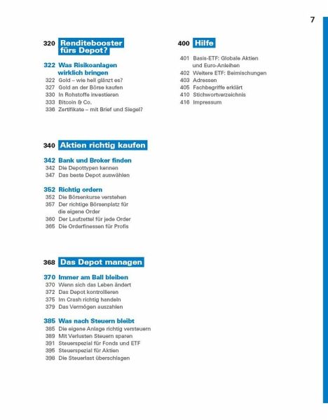 - Theorie & Praxis kombiniert: Von der Wahl des richtigen Aktiendepots über die erste Order bis zur steueroptimierten Anlage.