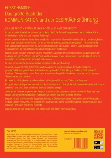 "Ich habe recht! Ich verhalte mich richtig. Also hast du Unrecht!"Ist das so, oder handelt es sich nur um unterschiedliche Betrachtungsweisen, verschiedene Werte, Vorstel-lungen aufgrund der sozialen Prägung? Immer wieder entstehen in der Kommunikation ungewollte Missverständnisse, die zu Unstimmigkeiten, Streit oder bösartigen Konflikten - ja bis zu kriegerischen Auseinandersetzungen - führen können.Sich verständlich austauschen zu können ist fast schon eine Kunst - und in Gesprächssituationen Voraussetzung für den erfolgreichen kommunikativen Austausch.Natürlich gibt es auch unterschiedliche Ansichten. Aufgrund der unendlich vielen Möglichkeiten der Kombi-nation von Wortteilen und Wörtern und bewusster sowie unbewusster Zweideutigkeit kann es weiterhin zu irreführendem Verständnis kommen.Ist eine verständliche Kommunikation tatsächlich lebensnotwendig?Schadet eingeschränkte, fehlerhafte und manipulierte Kommunikation der wirtschaftlichen, gesellschaftlichen, politischen, kulturellen und gesunden Entwicklung - bis hin zum Überleben?Zu einem Dialog gehören zwei Personen, in anderen Gesprächssituationen kommen auch mehrere Teilnehmende zusammen.Ein jeder ist als Individuum zu betrachten, mit eigenen Wünschen, Zielen und Ängsten.Ein guter Gesprächspartner wertschätzt den/die andere und drängt darauf, dessen/deren Bedürfnisse zu erkennen und trotz aller fachlichen Ziele zu berücksichtigen.Jeder kann zu einer angenehmen Gesprächsatmosphäre beitragen, auch mal eine fünf gerade sein lassen und den kommunikativen Austausch zu einem positiven Erlebnis formen.Das gilt für die professionelle Gesprächsführung in Diskussionen und Talkrunden, beim Verhandeln, Verkauf und in Interviews, im Umgang mit Journalisten, sowie bei Moderationen in Meetings, sei es in Präsenz-Form oder als Online-Variante.Guten Erfolg bei der einfühlsam und erfolgreich geführten Kommunikation.