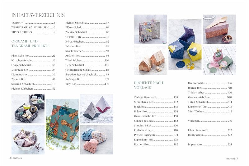 Es wird unterteilt in Origami-und Tangrami-Projekte, sowie Projekte nach Vorlage.