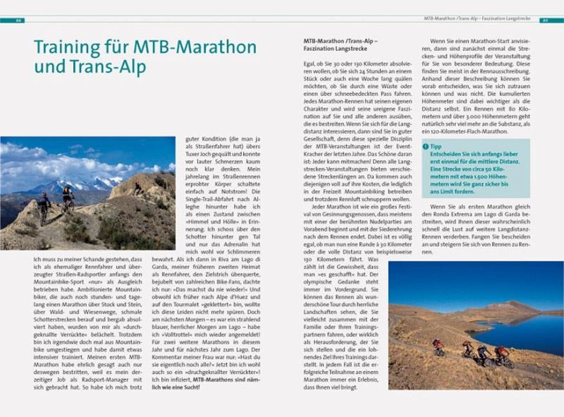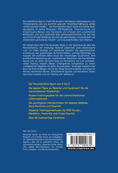 Mountainbiking liegt voll im Trend. Das Offroad-Radfahren in der freien Natur macht ungeheuer viel Spaß, ist erlebnisreich, gesund und ein optimales Fitnesstraining. MTB-Marathons und Trans-Alp-Touren sind derzeit Topp-Events im Radsport. Wer jedoch in dieser boomenden Sportart seine angestrebten Ziele erreichen will, der muss auch systematisch und richtig trainieren. Der Autor präsentiert in diesem Buch sein erfolgreiches und bewährtes Trainingsprogramm. Fitness-Biker und ambitionierte Rennfahrer finden wertvolle Tipps zum individuellen Aufbau und zur Optimierung ihres Trainings. Einsteiger und Neulinge werden begleitet, bis sie im Umgang mit dem Bike die nötige Routine erreichen und sich neue Ziele setzten können. Mit Muster-Trainingsplänen für alle Disziplinen und Niveaus, wertvollen Tipps und illustrativen Farbfotos.