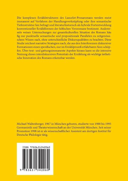 Die komplexen Erzählstrukturen des Lancelot-Prosaromans werden meist immanent auf Verfahren der Handlungsverknüpfung oder ihre semantische Tiefenstruktur hin befragt und literaturhistorisch als hybride Fortentwicklung konventioneller Erzählformen der höfischen Versromane bestimmt. Andererseits weisen Untersuchungen zur gesamtkulturellen Situation des Romans häufig nur punktuelle semantische und propositionale Parallelen zu zeitgenössischem Wissen nach, ohne unterschiedliche Diskursqualitäten zu beachten. Diese Studie zeichnet narrative Strategien nach, die aus den Interferenzen diskursiver Formationen einen spezifischen, nur im Erzspezifischen, nur im Erzählprozeß erfahrbaren Sinn schöpfen. Über text- und gattungsimmanente Aspekte hinaus kann so die intensive Nutzung dieses interdiskursiven Potentials der Erzählung als wichtige ästhetische Innovation des Romans erkennbar werden.