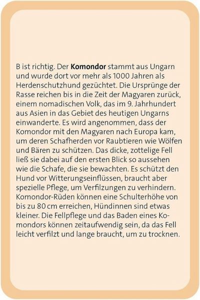 Zudem ist es ein schönes Geschenk für Hundeliebhaber: durch die hochwertige Aufmachung, die Vielfalt der Fragen und die liebevolle Gestaltung hebt es sich von vielen anderen Quizspielen ab.